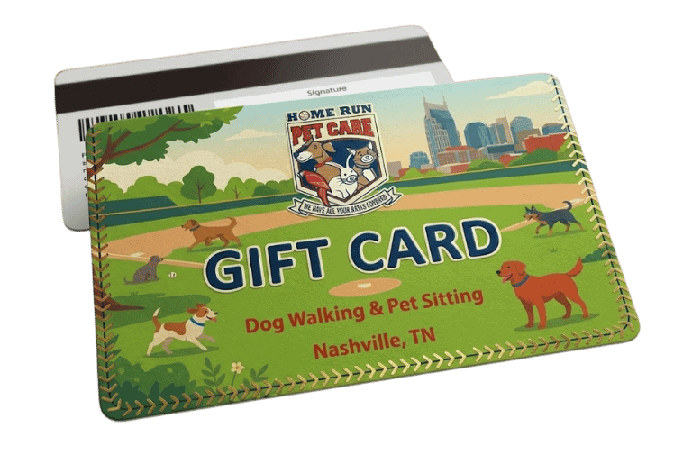 Looking for a meaningful gift for a dog lover in Nashville, TN? Home Run Pet Care gift cards are a practical, appreciated option for pet parents who want trusted, professional care for their pets right here in our local community. They make a fantastic gift for your favorite furry friends, too!